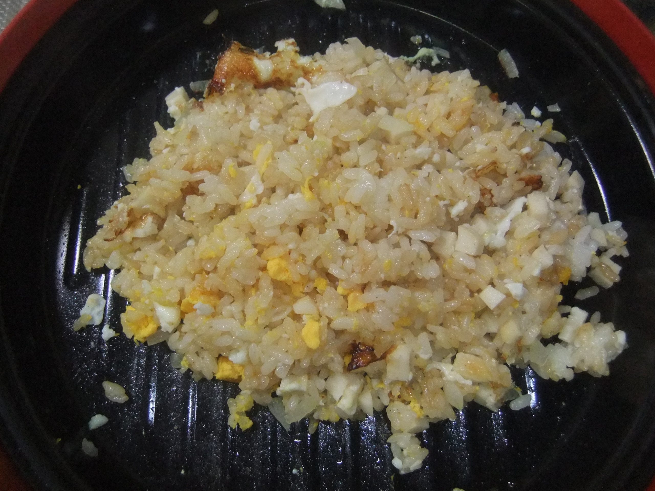 写真ではわかり辛いですが、焦げた白身がアクセントになってチャーハンを引き立てています。