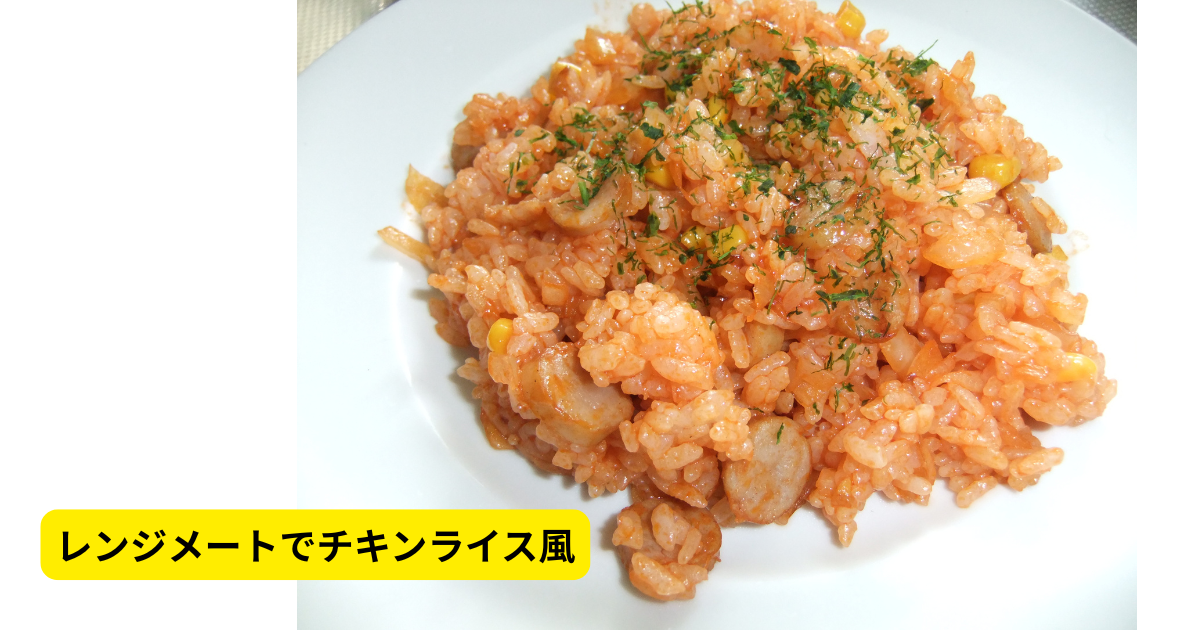 レンジメートエブリで電子レンジ 600w 4分間加熱で、玉ねぎシャキシャキ、酸味も飛んで子供も食べやすい、柔らかめのふんわりチキンライス風が簡単にできました。